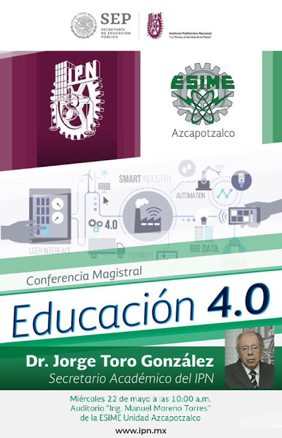El Secretario Académico del Instituto Politécnico Nacional (IPN), Jorge Toro González, ofreció a directivos, docentes y alumnos, una conferencia titulada “Educación 4.0”, para hablar de la necesidad que tiene el Instituto de transformar la educación politécnica en Educación 4.0 y el gran reto que esto conlleva, por lo que es necesario implementar una agenda estratégica en donde estén involucradas todas las áreas académicas del Politécnico.
